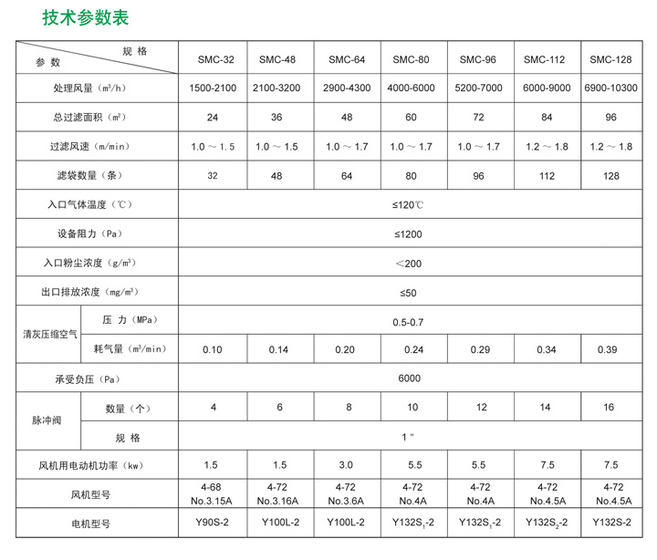 SMC型脈沖除塵器是吸收國內(nèi)外同類產(chǎn)品經(jīng)改進后設(shè)計而成的小型袋式除塵器。除塵器采用脈沖逐行噴吹的清灰方式,具有清灰效果好、凈化效率高、濾袋壽命長、維修工作量小、運行安全可靠的優(yōu)點。廣泛用于冶金、建材、機械、化工、礦山等各種工礦企業(yè)非纖維工業(yè)粉塵的除塵凈化與物料的回收,主要應(yīng)用于碼頭、輸送、倉儲等散點收塵。本系列除塵器共有七個規(guī)格,其結(jié)構(gòu)主要由過濾室、濾袋、凈氣室、灰斗、卸灰裝置、脈沖噴吹清灰裝置、電控箱等組成,箱體全部采用焊接結(jié)構(gòu)。檢修門采用密封結(jié)構(gòu)。公司還生產(chǎn)SMD等系列單機脈沖袋式除塵器。